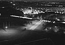 The evolution of night navigation began with the lighting of bonfires and progressed to artificial light beacons to aid pilots. These beacons flashed in sequences while fixed tower lights pointed to the next field and one to the previous tower, forming an aerial roadway. For accuracy, a 500-watt revolving searchlight would project a beam parallel to the ground to guide pilots while another searchlight projected into the wind to show the proper approach.